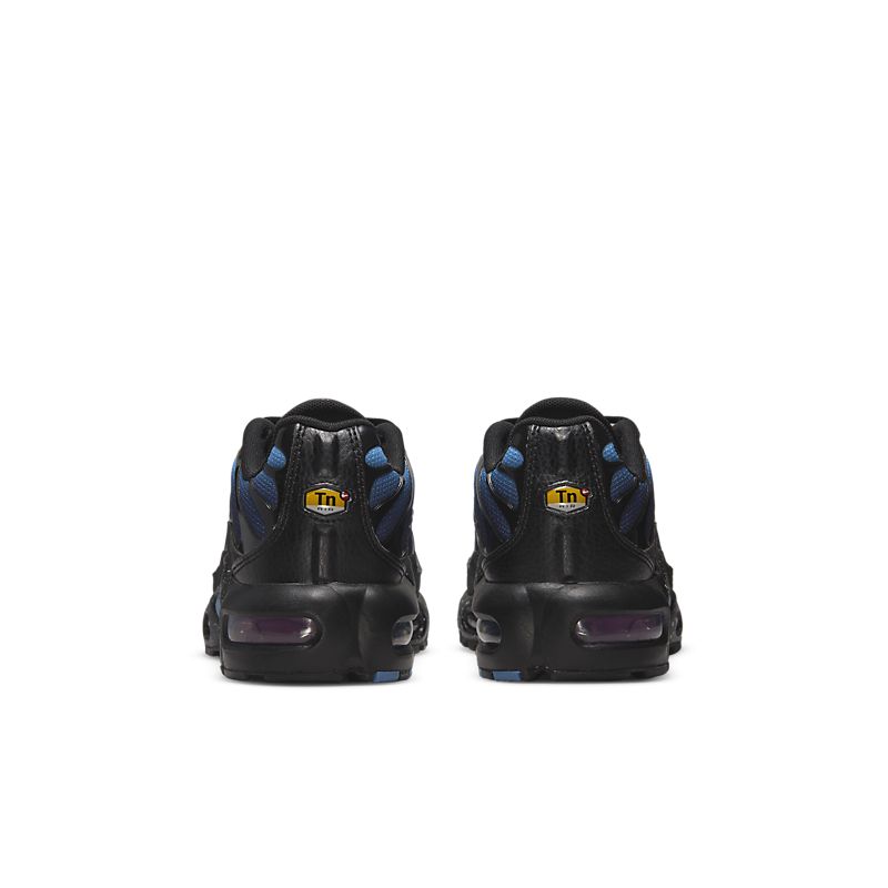 - La Nike Air Max Plus Blue Black combine un dégradé de bleu intense avec des accents noirs pour un look percutant.